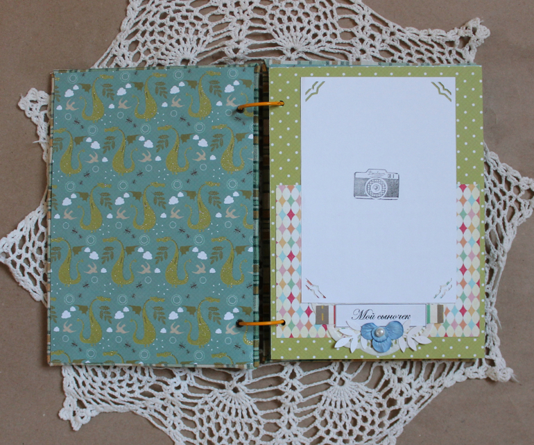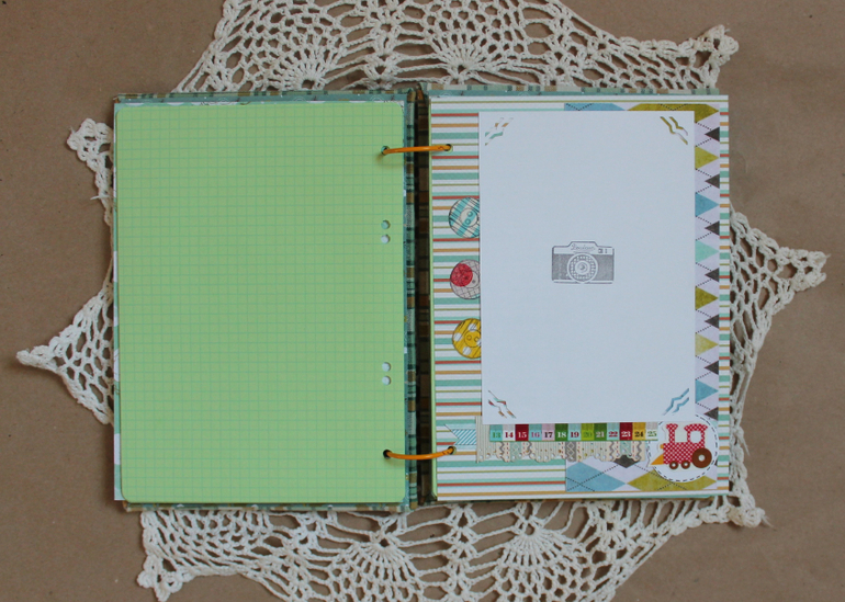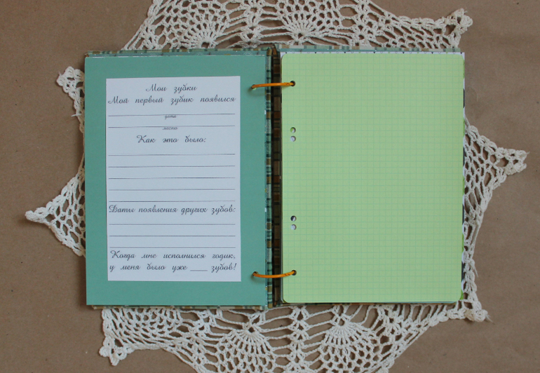 Внутри как обычно-клеточный блок для удобного заполнения,несколько разделителей с местом под фото и местом для записей достижений крохи.![]()