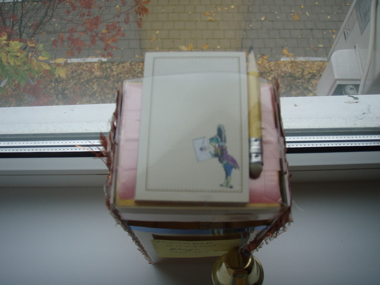 Он стоит. Как бы объяснить-то? Если взять фотоальбом, выбрать листы, а обложку на раскрытии склеить, получится эдакий устойчивый треугольник)))) Ну а потом — декорируем.