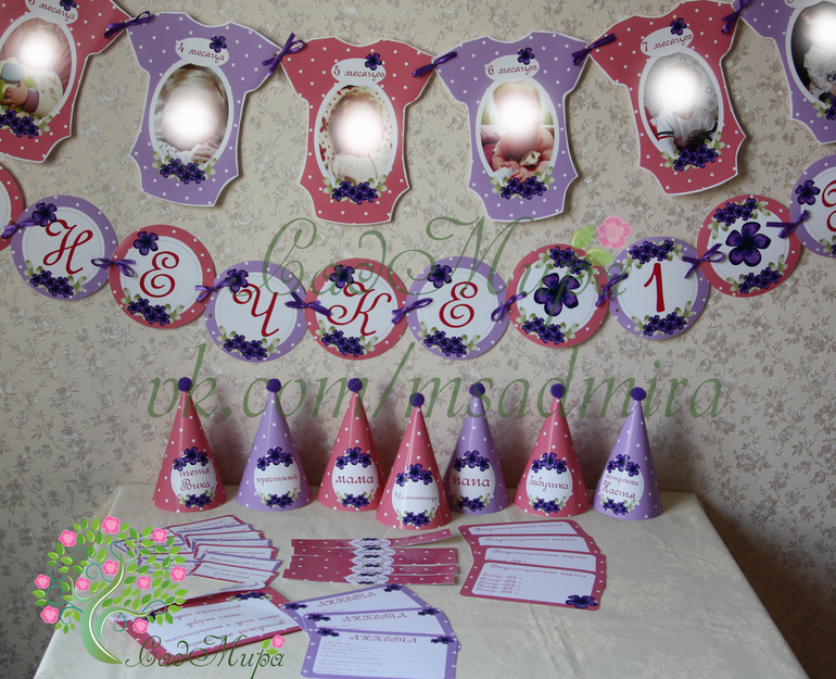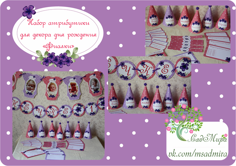 Оформление праздников, аксессуары для фотосессийНбор атрибутики для декора дня рождения "Фиалки".