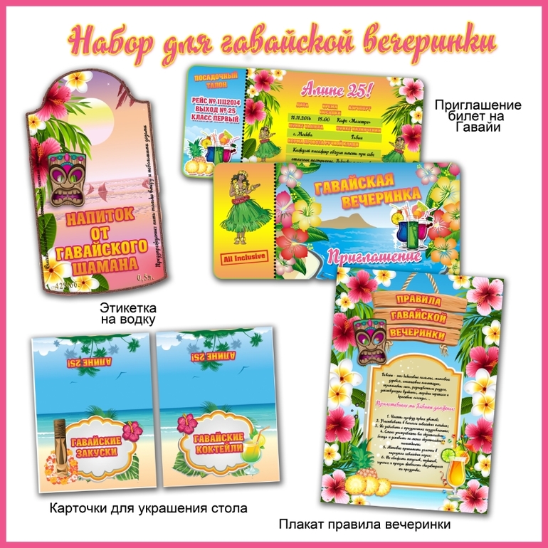 - Приглашения 2-х сторонние "Билет на Гавайи"