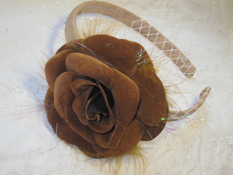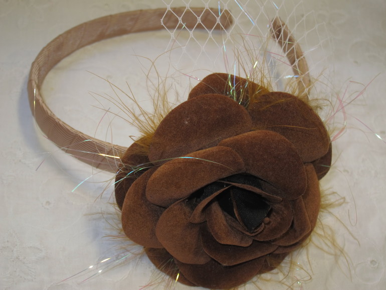 Бижутерия, броши, аксессуары для волосСтильное украшение для волос, бархатная роза вкусного шоколадного цвета, вуаль придаёт элегантность и изысканность! Подходит и маленьким принцессам и их мамам!