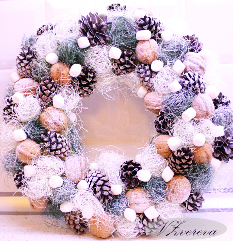 Рождественский венок "Заснеженный зефир"