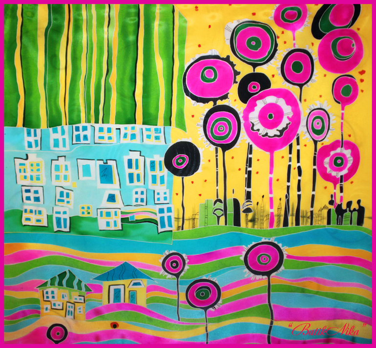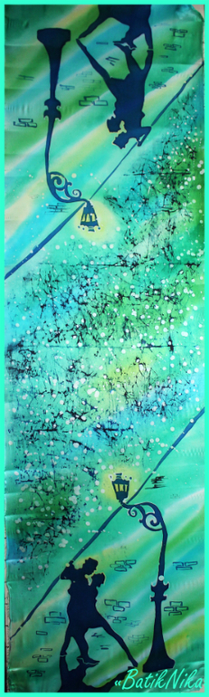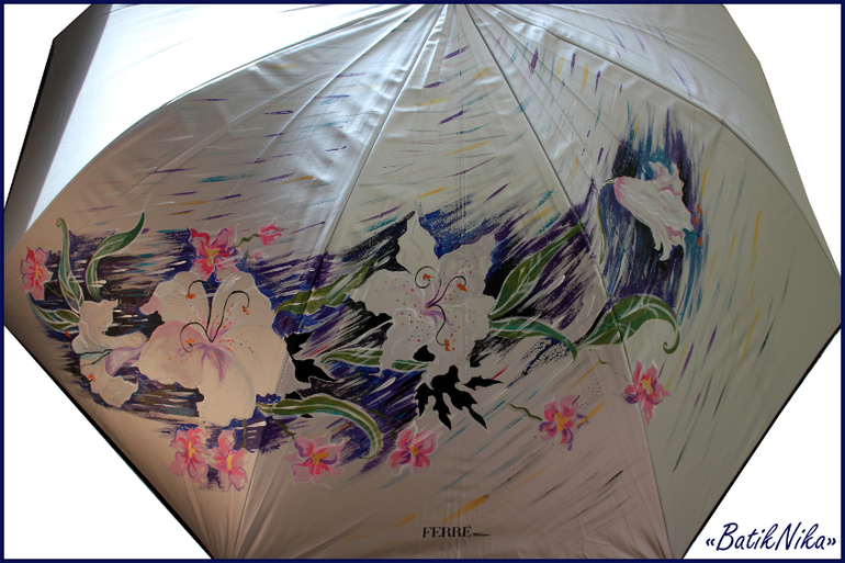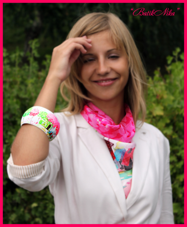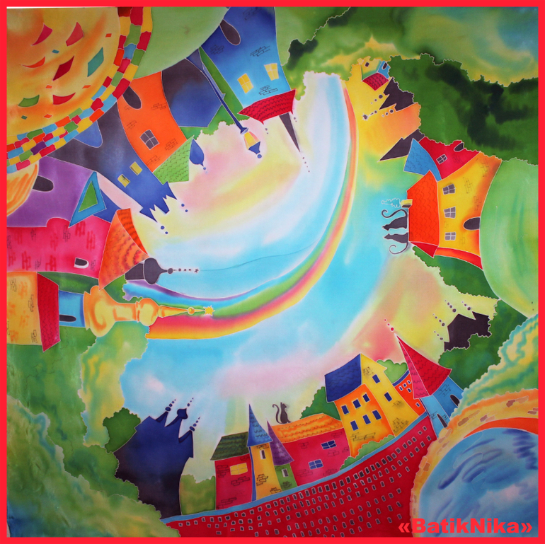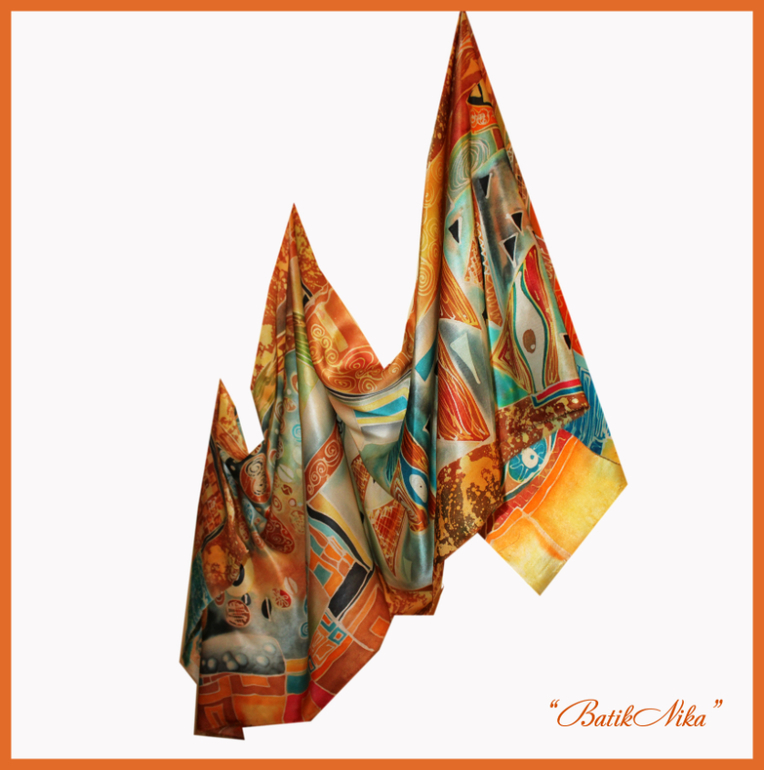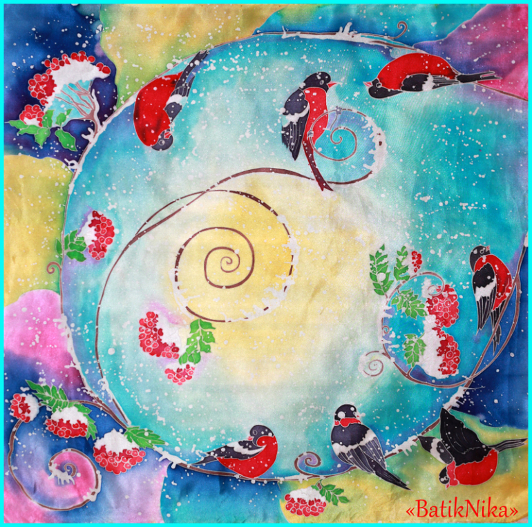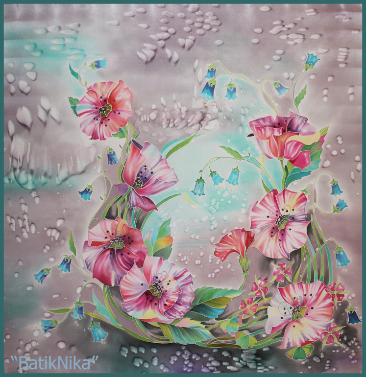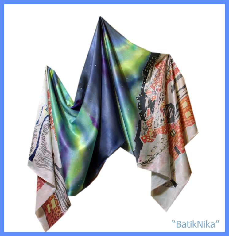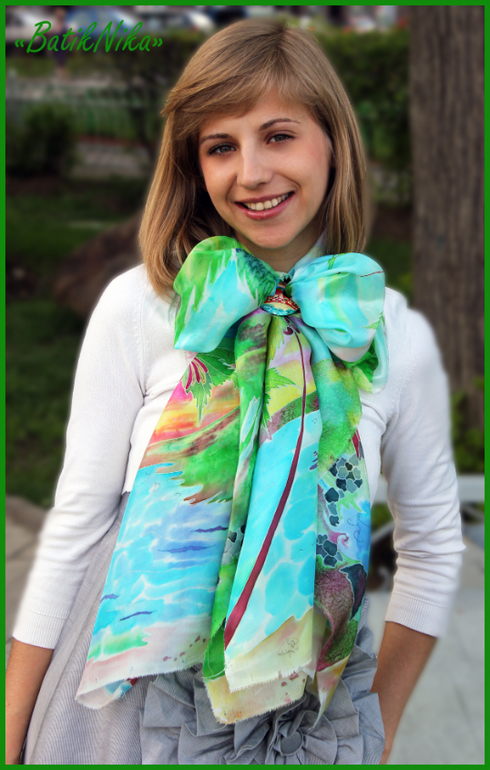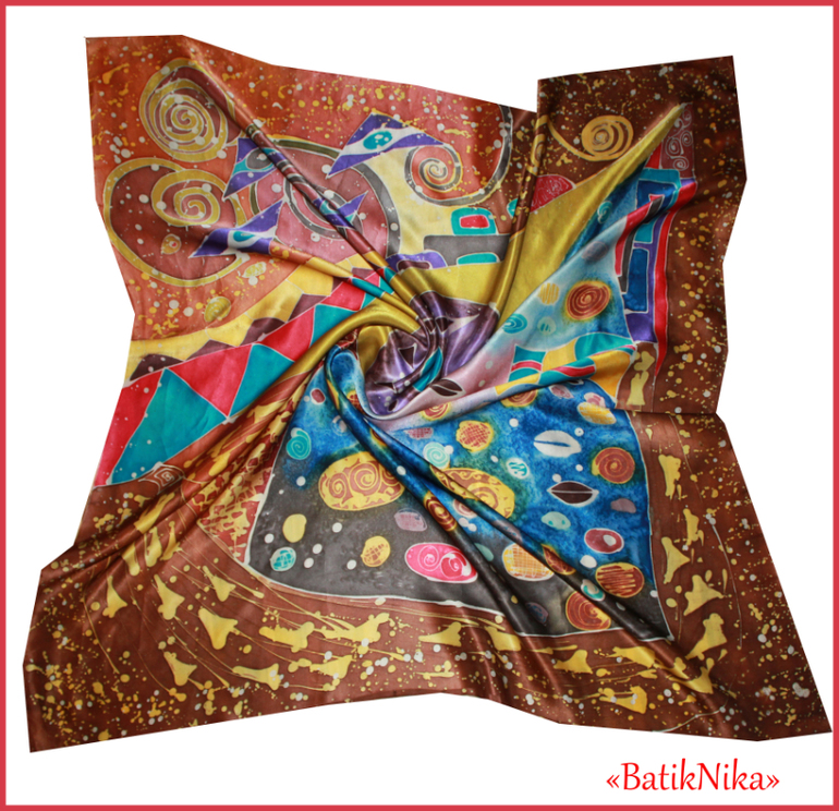 Все выполнено на натуральном шелке, роспись вручную в разных техниках. Возможна роспись не только шелка, были зонтики, браслеты деревянные и даже обувь :)