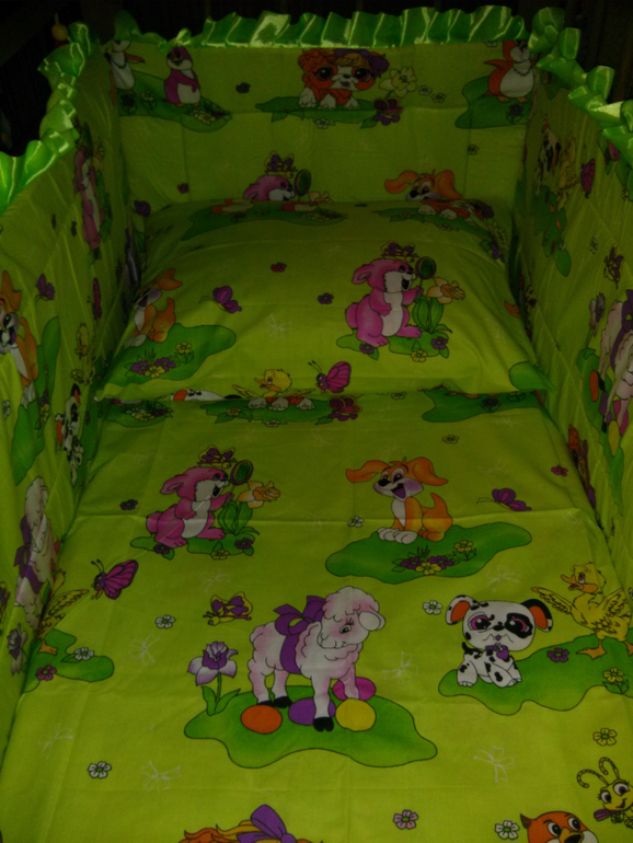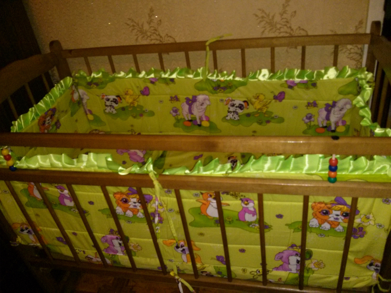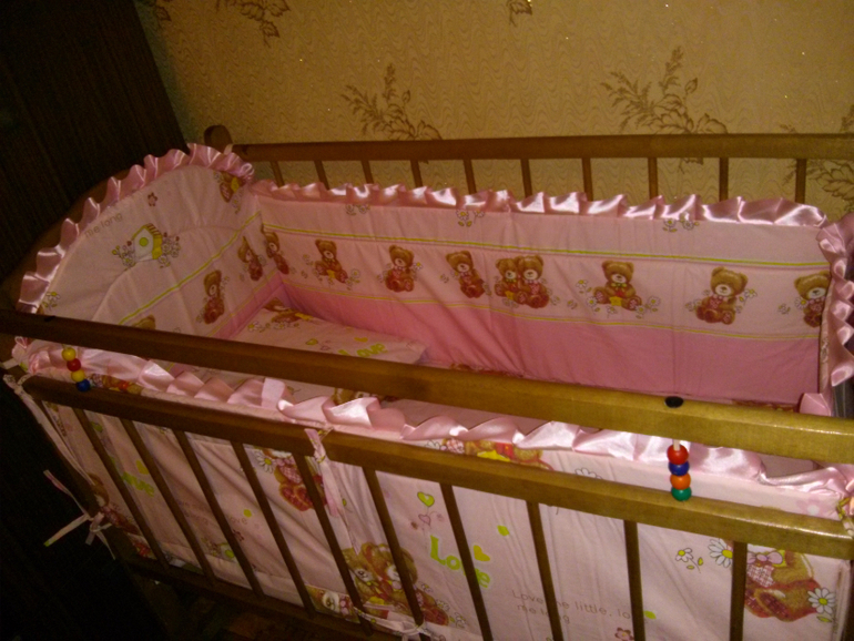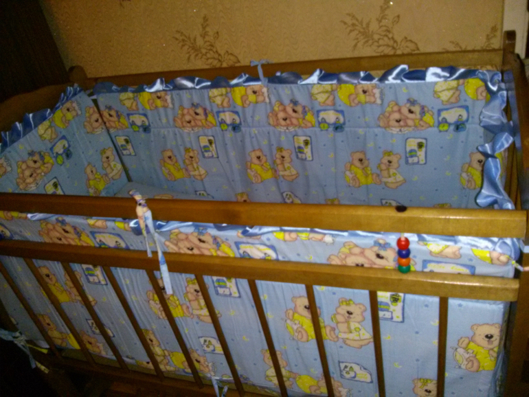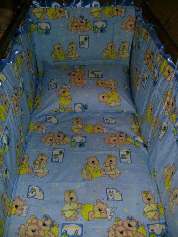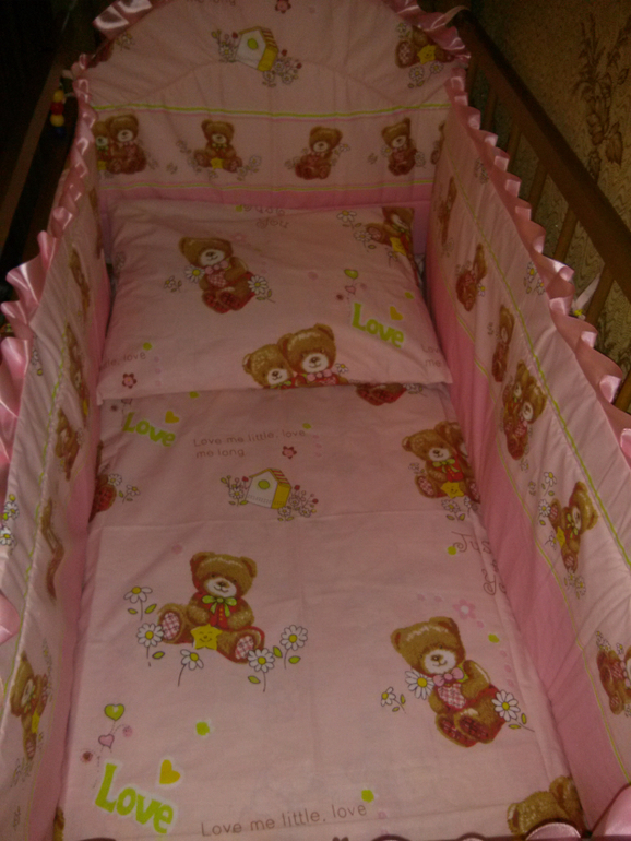 Текстиль для дома (шторы, постельное белье и т.д.)Привет! Шью комплекты в кроватку для самых маленьких! Постельное белье из качественной бязи(100% хлопок), бортики с наполнителем из тонкого мебельного поролона! В комплект входит: 1 наволочка 60/40, 1 простынь 140/110, 1 пододеяльник 140/110, бортики на каждую сторону кроватки(4шт), а так же кармашек 45/30 для разных мелочей! Комплекты украшены атласной лентой! Ткань прочная, не садится и не красятся при стирке! Цена комплекта 1300руб. По всем вопросам пишите, отвечу всем)