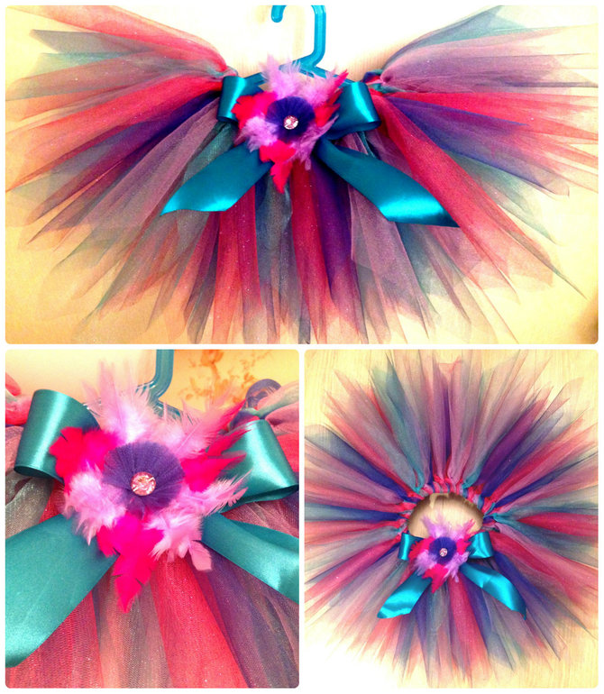 Юбочку можно сделать пышной или просто свисающей, в зависимости от жёсткости фатина. Края юбки с острыми уголками или обычными прямоугольными полосками. Цвета зависят от Вашей фантазии. Можно сделать её одноцветной или всех цветов радуги! Верх Ваш, т.е. маечка или топ, я просто могу дополнить и украсить их в тон юбочки, за доп.плату.
