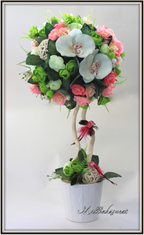 Топиарии , елочки и интерьерные букеты.