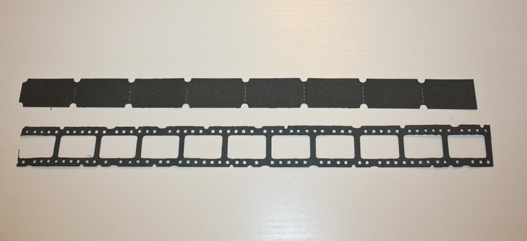 7. Кинопленка и билетики. Материал - темно-серая бумага для пастели плотностью 160 г/м2. Размер кинопленки (в см.): 28*2,6. Размер билетиков (в см.): 28*2. Цена за наборчик 30р.
