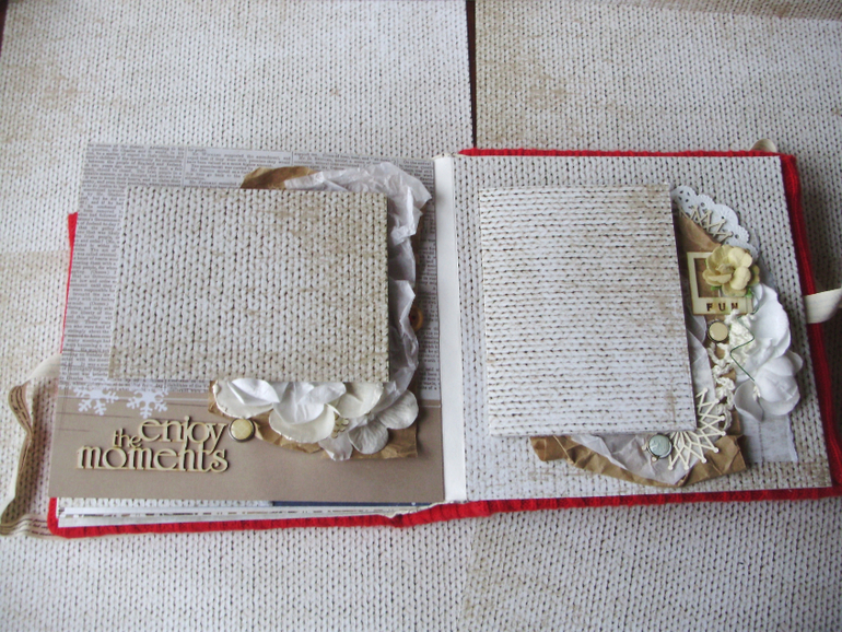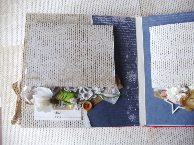 Мягкая обложка из уютного трикотажа, размер 18х18 см, 5 разворотов (10 страниц), цветочный и праздничный, на каждой странице гармошка из плотной скрапбумаги для вклеивания 5 фотографий (9х13), завязывается на хлопковую ленту.