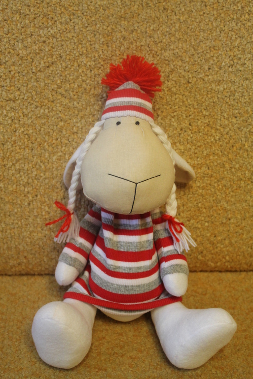 Новый год и РождествоОчаровательная, мягкая барашка символ 2015.Ручки и ножки подвижны. Выполнена их флиса и х.б ткани.