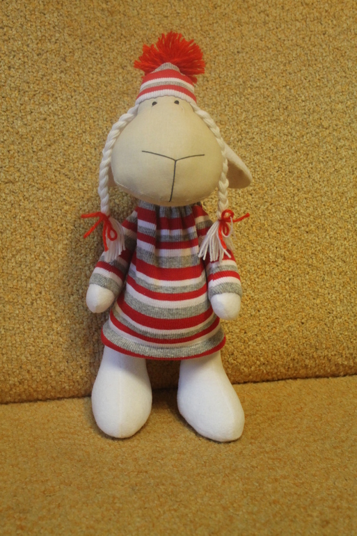 Очаровательная, мягкая барашка символ 2015.Ручки и ножки подвижны. Выполнена их флиса и х.б ткани.