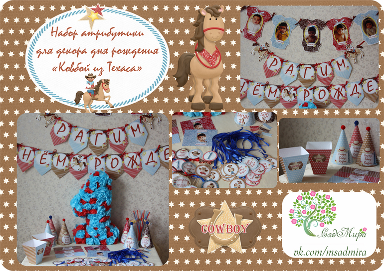 Оформление праздников, аксессуары для фотосессийНабор атрибутики для декора дня рождения "Ковбой из Техаса".