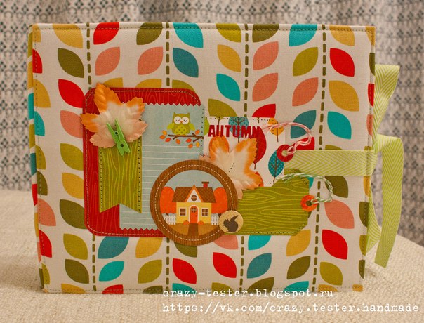 Скрапбукинг (альбомы, открытки и пр.)1. Осенний фотоальбом размера 24,5*20 в твердом переплете и мягкой хлопковой обложке. Пять разворотов (10 страниц) на 30 фотографий размера 10*15, есть место для записей, один крафт-конверт и два кармана для дополнительных фотографий.