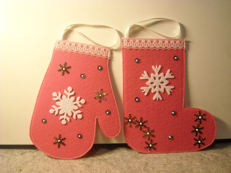 ФетрВот моя первая работа с фетром, елочные украшения дочке в садик. С цветом беда, фотик не передал, фетр ярко-розовый был.