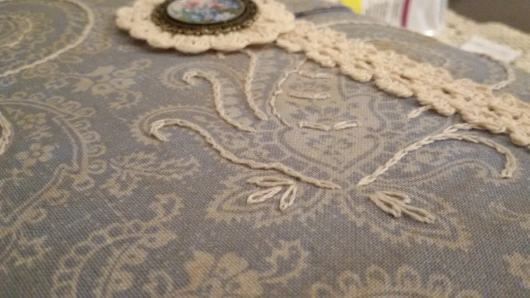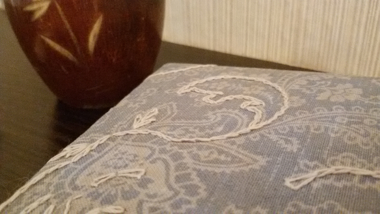 Первый в ретро стиле. На обложке вышитый узор. Ткань состарена. Застегивается на магнитик.