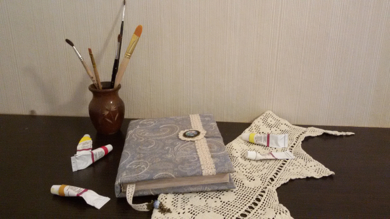 Скрапбукинг (альбомы, открытки и пр.)Первый в ретро стиле. На обложке вышитый узор. Ткань состарена. Застегивается на магнитик.