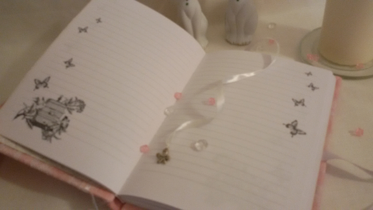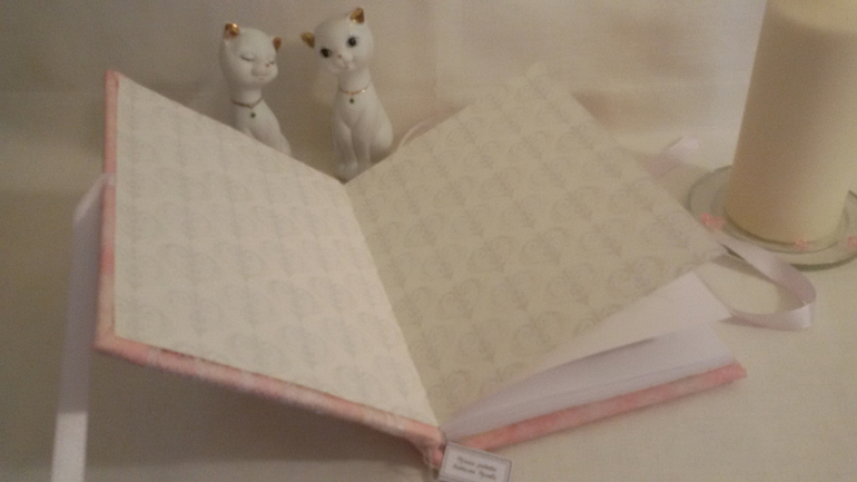 Второй блокнотик нежно-бело-розовый. На завязочках с белыми страничками.