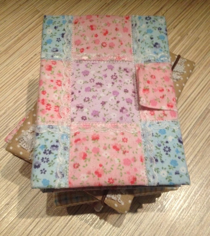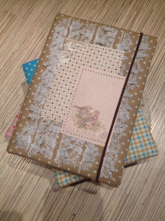 В стиле винтаж, закрывается на резинку. Обложка: хлопок, кружева, скрапбумага.