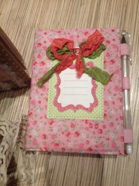 Нежный, свежий! Зарывается на ручку, вставленную в держатели. Обложка: хлопок, скрапбумага, шебби ленты, братс.