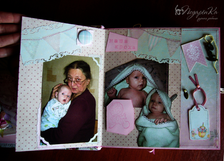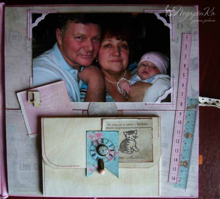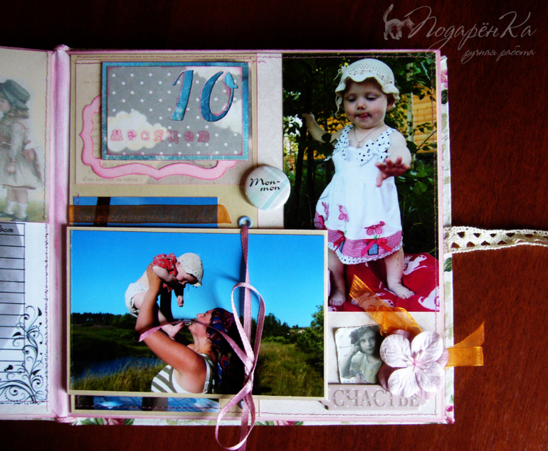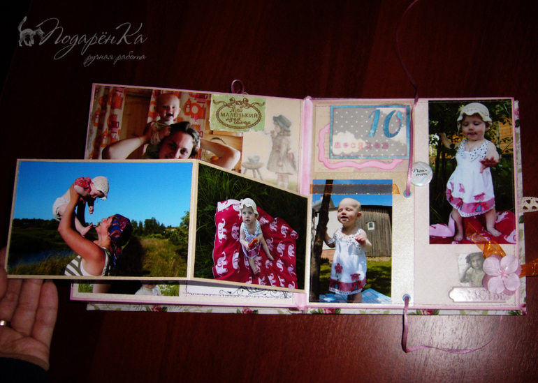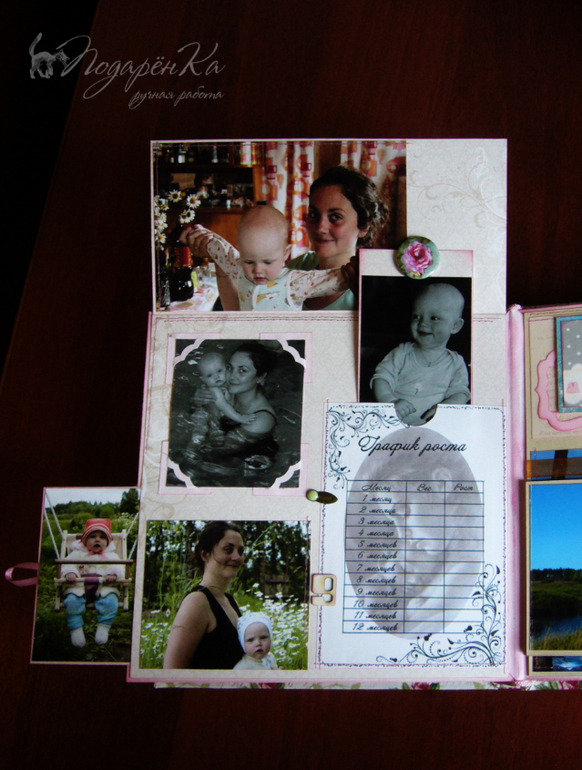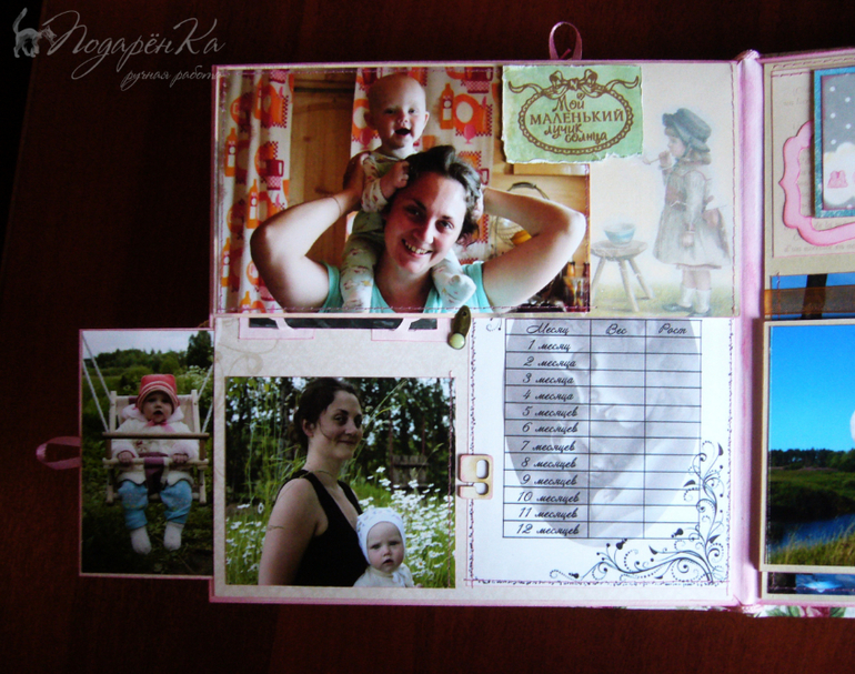Скрапбукинг (альбомы, открытки и пр.)Альбом первого года жизни для девочки))) Размер: 21*21 см. 14 страниц. По странице на каждый месяц и еще две-тематические))