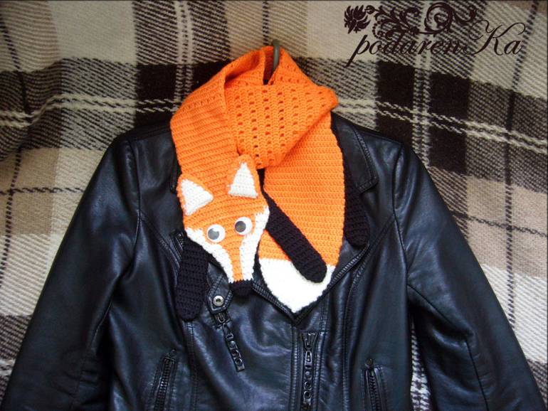 Представляю Вам оригинальный шарф из полушерстяных ниток в виде уютно свернувшегося удава))) Кроме того, на заказ я связала такую же Лису (разумеется с лапками вдобавок)))