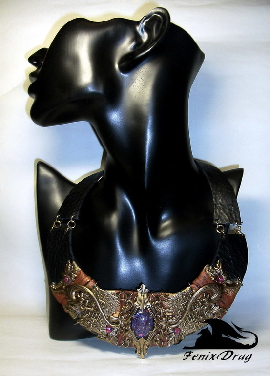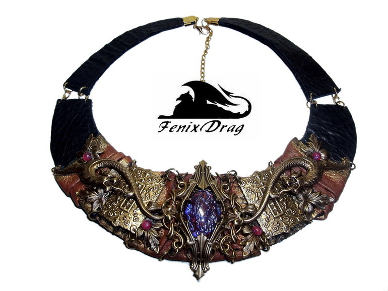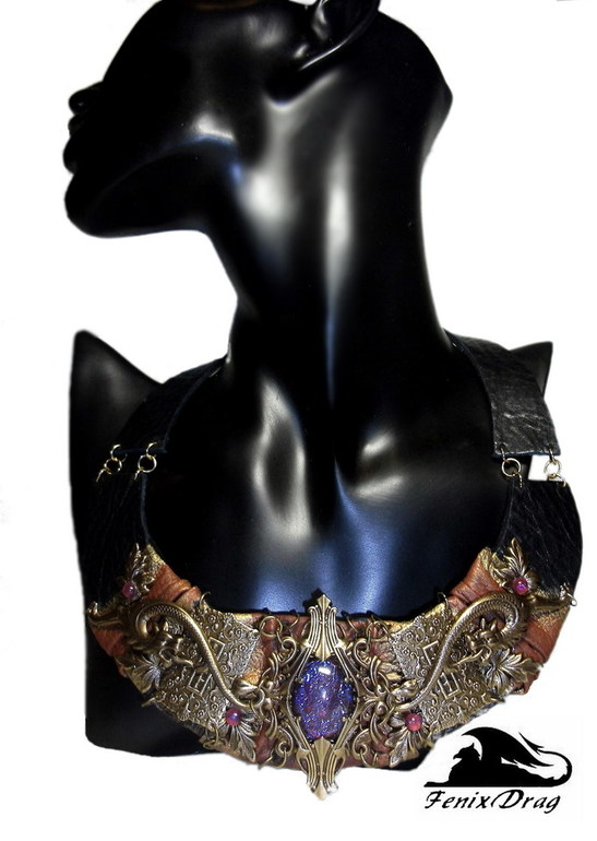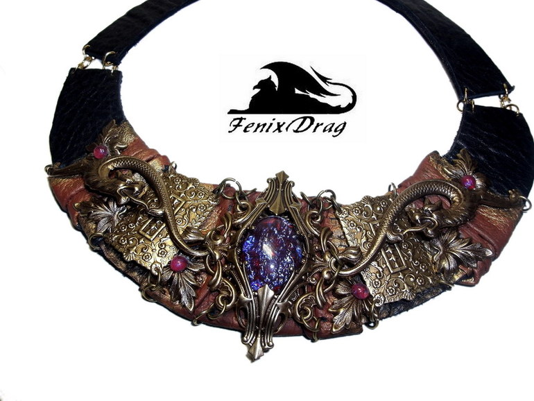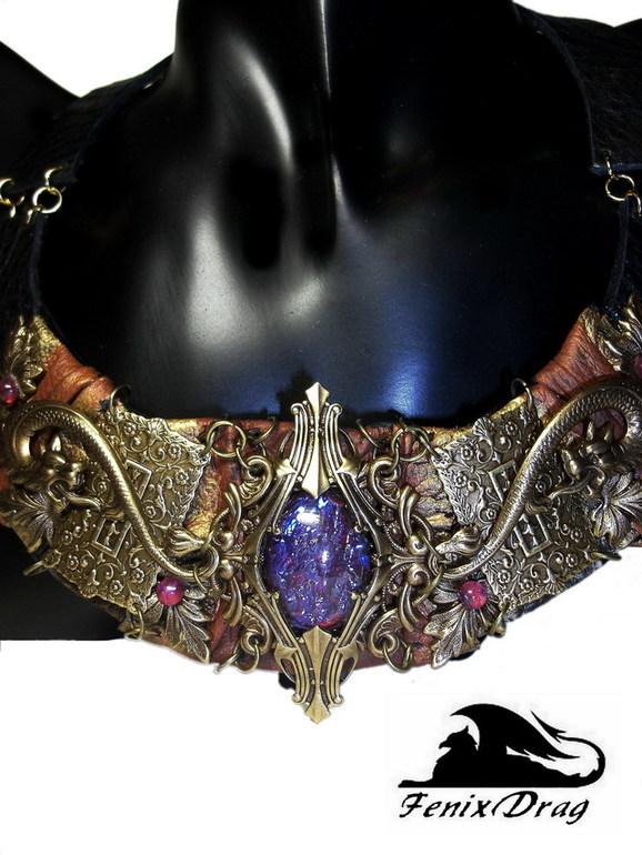 Колье из кожи "Мистерия" с мифическими волками в стиле Нео-винтаж, Фентези ручная работа