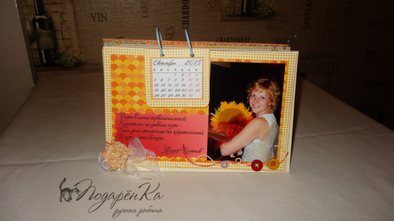 Четыре сезона, каждый - с соответствующим фото и четверостишием. Размер 23*15 см.