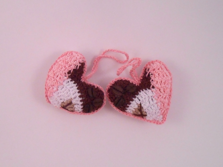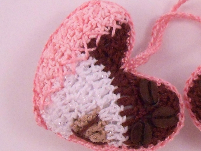 Сердце связано из хлопка, украшено бисером и кофейными зернами. Размер 6х7 см. Цена 350р