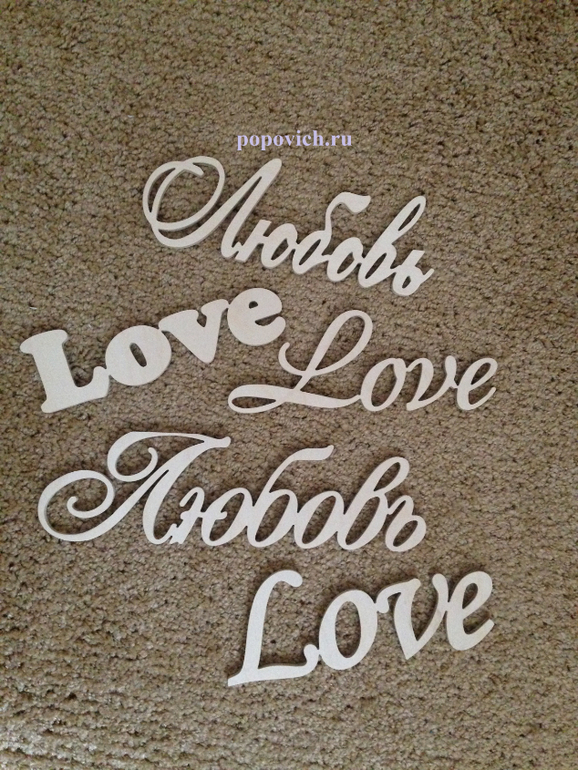Предметы интерьера, декор, мебель и изделия из дереваВ наличии слова из 6 мм фанеры. Русские слова по 300 руб, английские по 200 руб. Слова не окрашены. Можно покрасить по вашему желанию. Люберцы, Раменское, м. Выхино, м. Электрозаводская, м. Славянский бульвар.