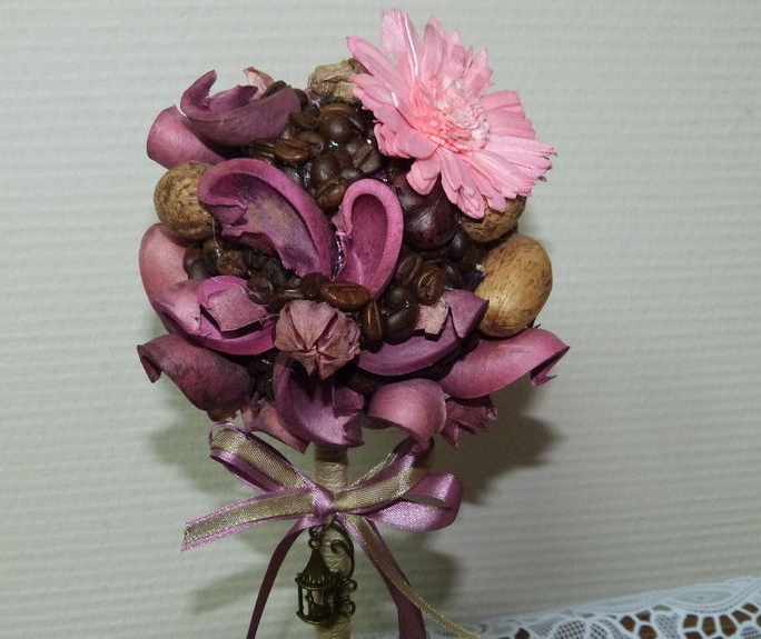 Изготовлено из саше природных материалов (сухие цветы, кора экзотических растений и орехов), глиняный горшок. Цвета и размер саше возможно заказать другие (бирюзовый, красный, зеленый, коричневый, белый-айвори). Размер 30 см. Цена 800 р.