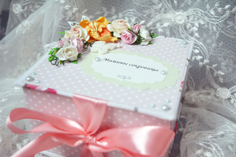 Скрапбукинг (альбомы, открытки и пр.)Захотелось мне однажды сделать розовенькие сокровища для девочки на 4 коробочки, и родилась вот такая прелесть, которая теперь ищет себе хозяйку)