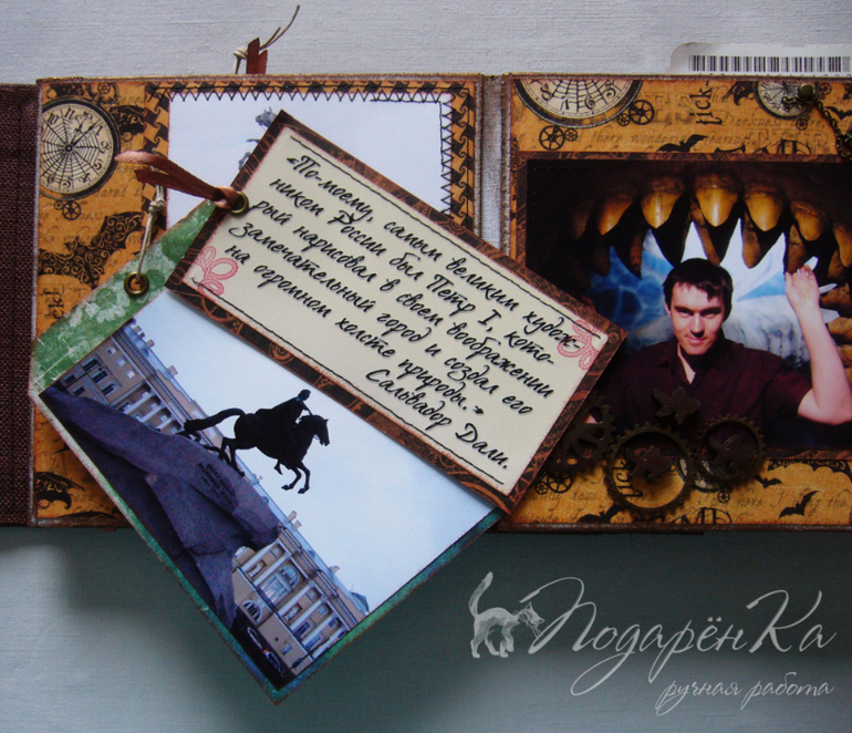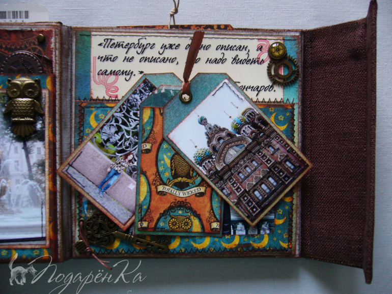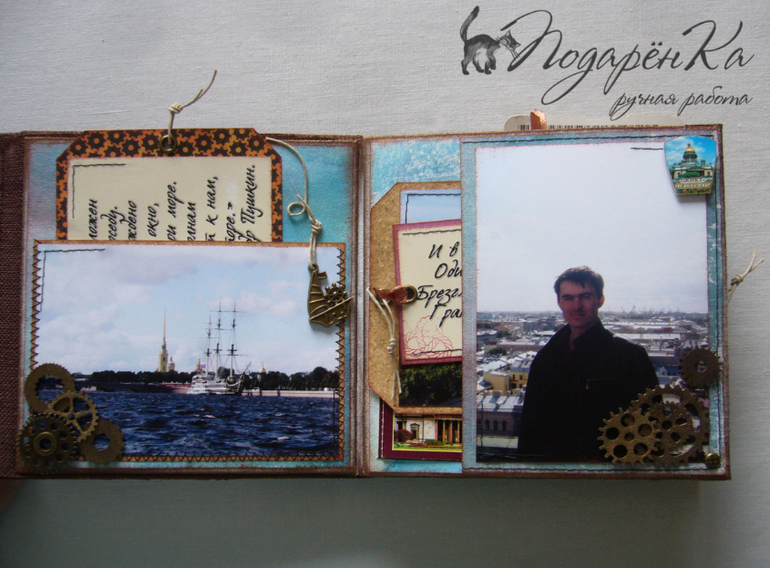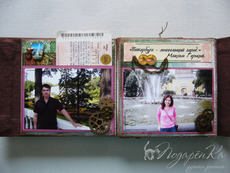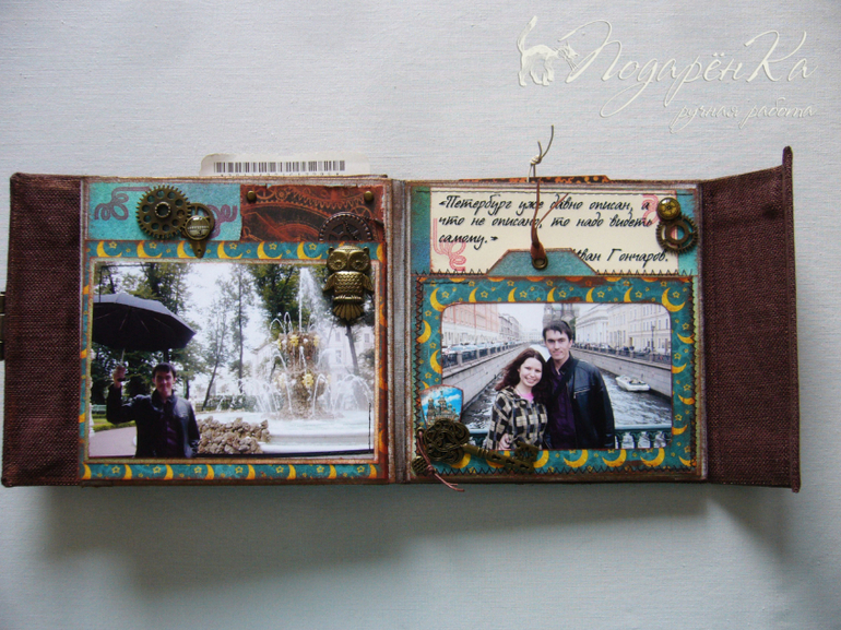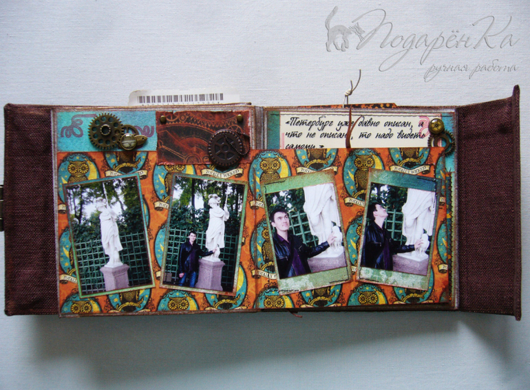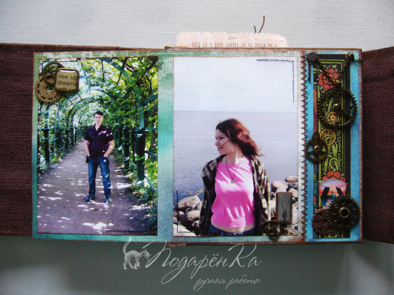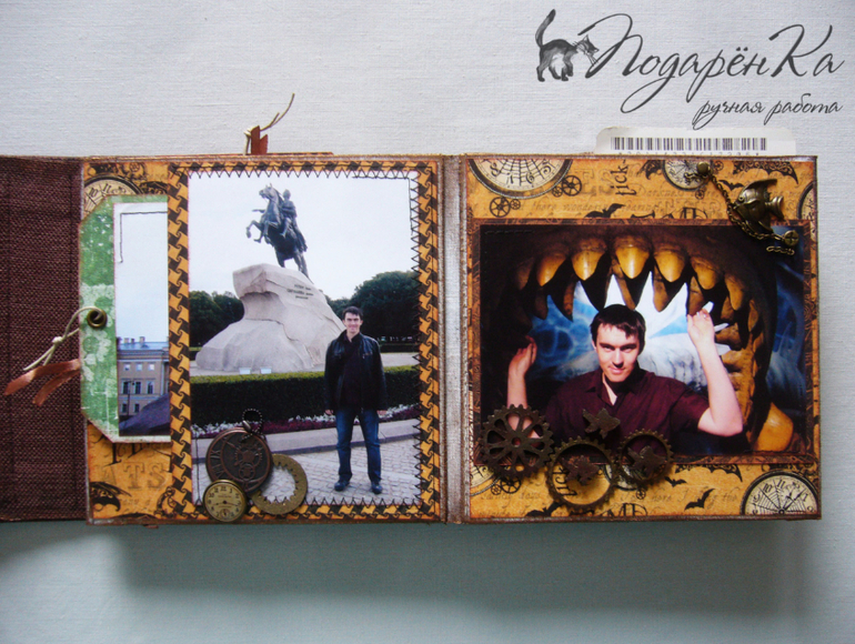 Скрапбукинг (альбомы, открытки и пр.)Похвастаюсь)) Сделала альбомчик на Д.Р. своему молодому человеку))) Попробовала себя в стиле стимпанк, который мне очень нравится! Альбом-гармошка на тканевом переплете. Специально сделала обложку такую, чтобы снаружи не было украшений и было похоже на шкатулку. Под катом много фото))) и видео с этим альбомом)