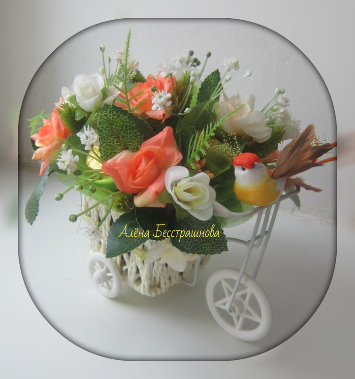 ЦВЕТОЧНАЯ КОМПОЗИЦИЯ С КОНФЕТАМИ В ВЕЛОСИПЕДЕ
