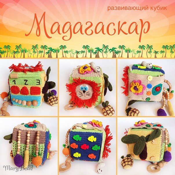 Развивающие игрушки и слингоаксессуарыПредставляю вам развивающий кубик " Мадагаскар". Игра с таким кубиком способствует развитию у ребенка органов чувств( зрение, слух, осязание) и познавательных процессов( речь, память, мышление, воображение, внимание). Развитие ребенка идет в игре, ему интересно узнавать новые предметы, трогать пальчиками детали разной формы, слушать звуки, находить " сюрпризы" , решать посильные задачи и просто путешествовать по острову Мадагаскару :) Кубик создан с учетом особенностей развития ребенка и каждая сторона способствует развитию определенных знаний, умений, навыков. Итак отправляется в путешествие по острову Мадагаскару :