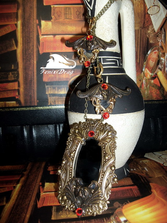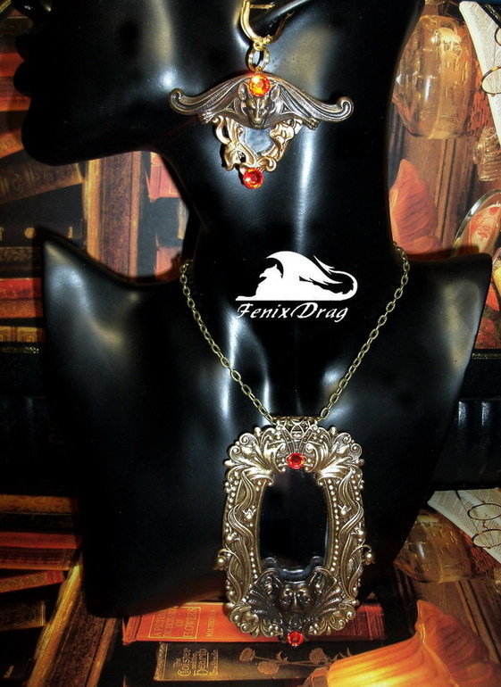 Крупный кулон и серьги "Горгулья" с зеркалом в стиле Готика, Винтаж