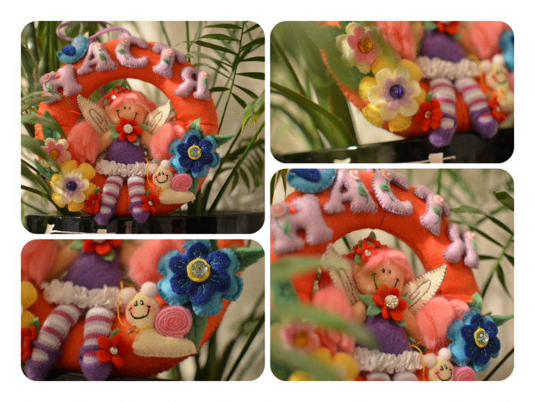 Именное панно диаметром 20см. Красивая и яркая феечка цветов со своим питомцем ))