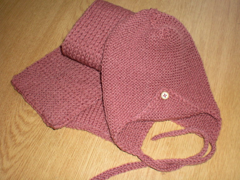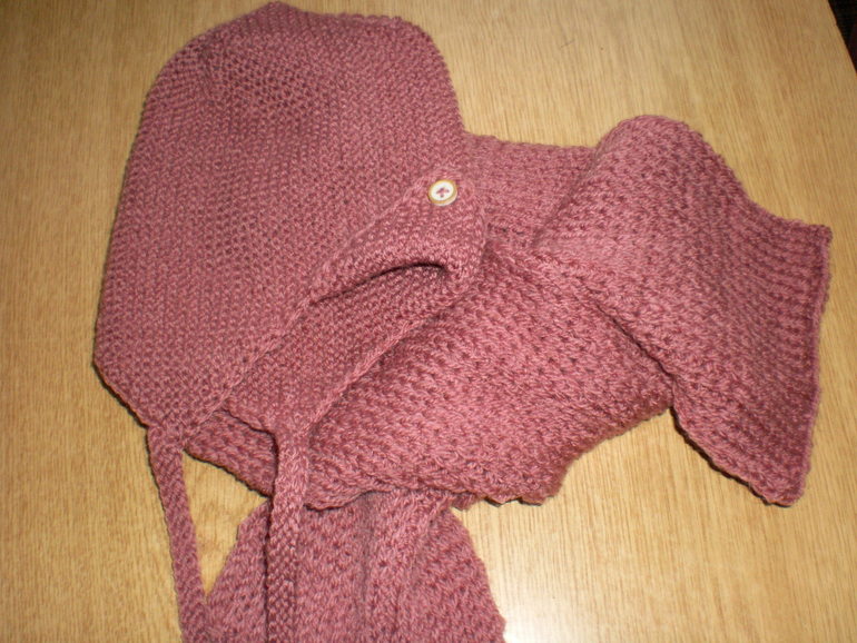 Шапочка для мальчика на возраст от 8 месяцев до 1 года, 1,5 лет связана в технике платочной вязки из очень мягкой пряжи "Ретро" из Троицка (30% шерсть, 70% акрил) на завязках, цвет Клевер. Очень удобна под более теплую шапку (для Северных регионов страны) или под капюшон куртки/ комбинезона. Шапочка дополнена шарфиком, связанным патентной резинкой.