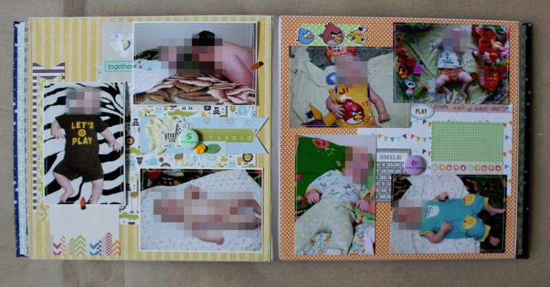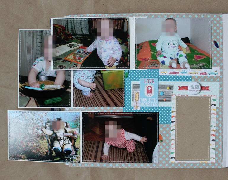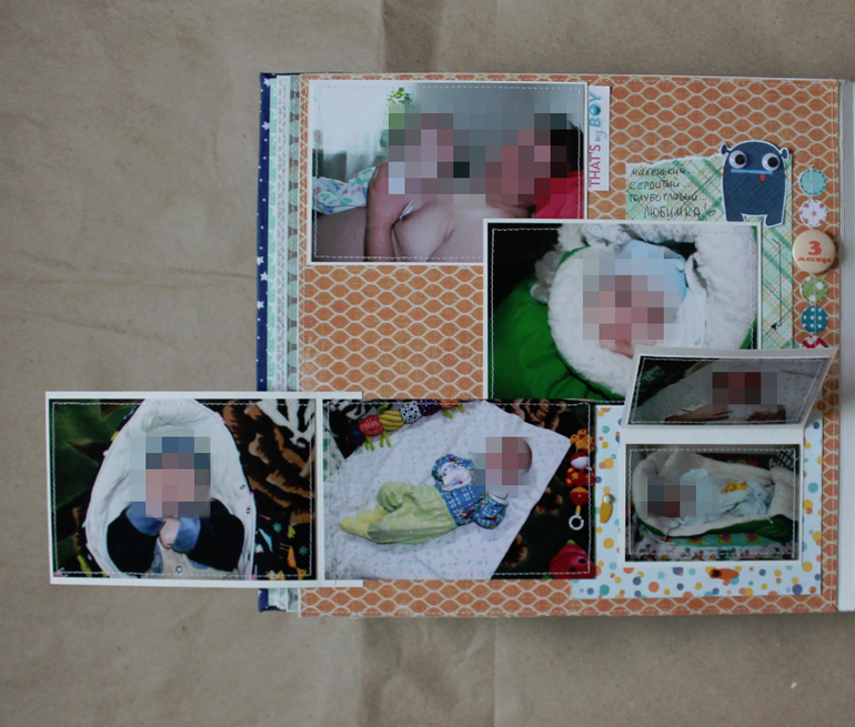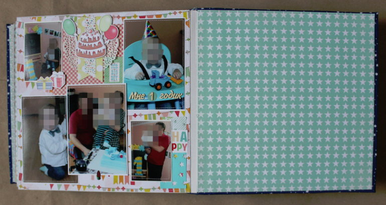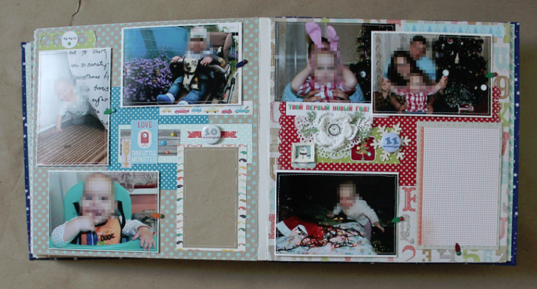Большой,тяжеленький и такой любимый :) Формат 25*25, в переплете, 16 страничек /9 листов ,много-много раскладушек и мест для записей,вмещает целых 106 фото любимой моськи :)