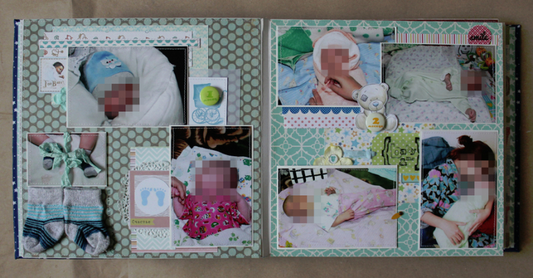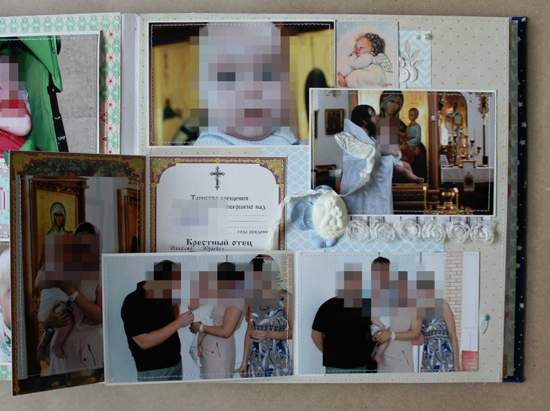 а это страничка о Крещении сыночка, здесь как раскладушку использовала свидетельство о крещении .![]()