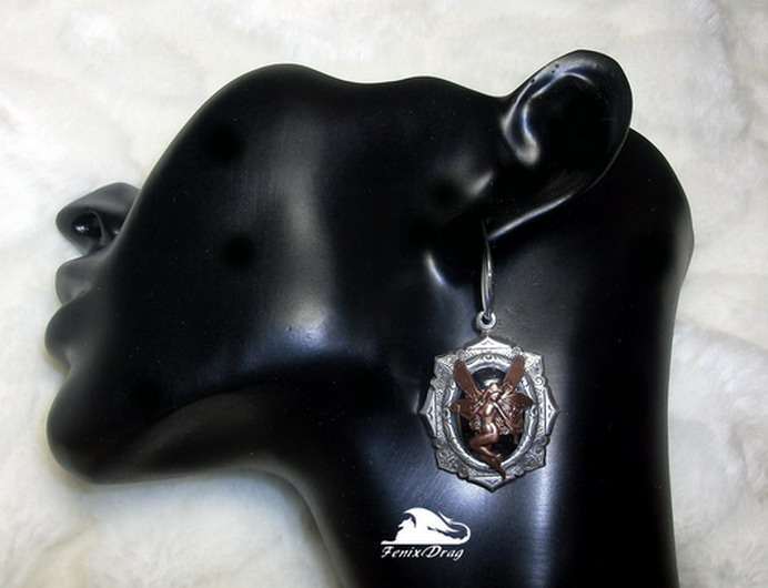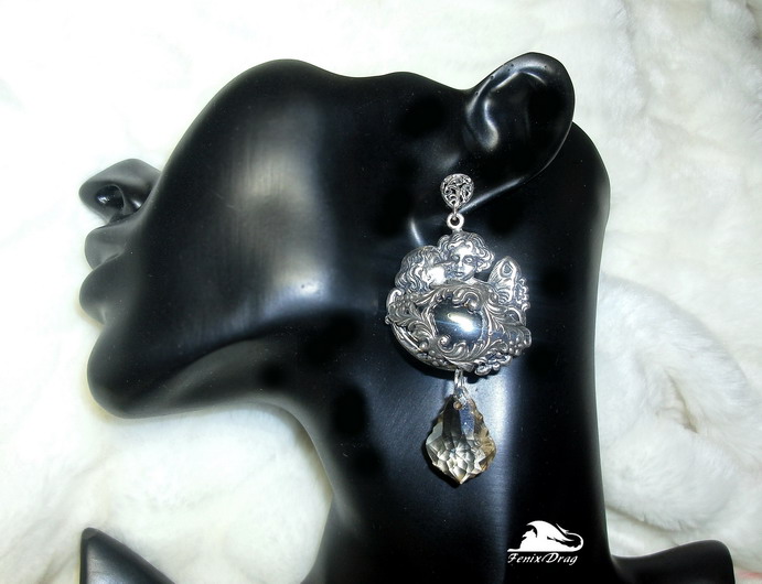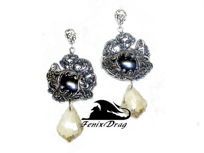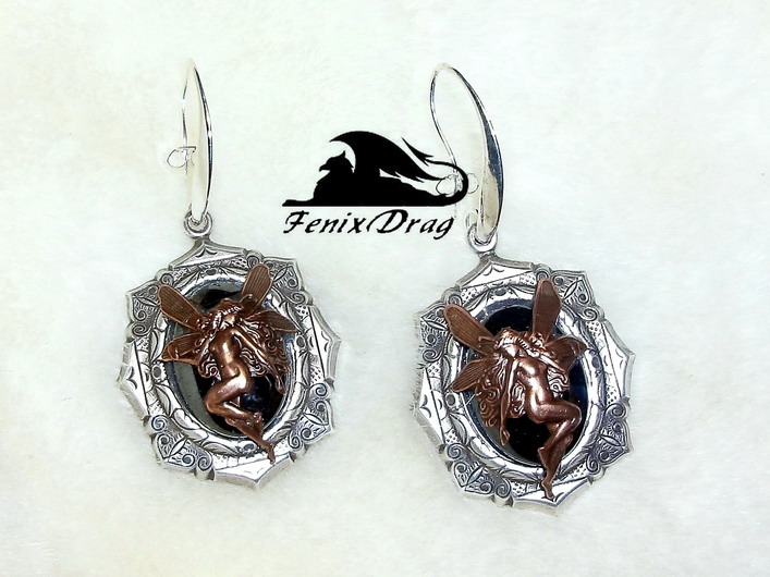 Винтажные серьги с гематитом Феями и Ангелами ручная работа