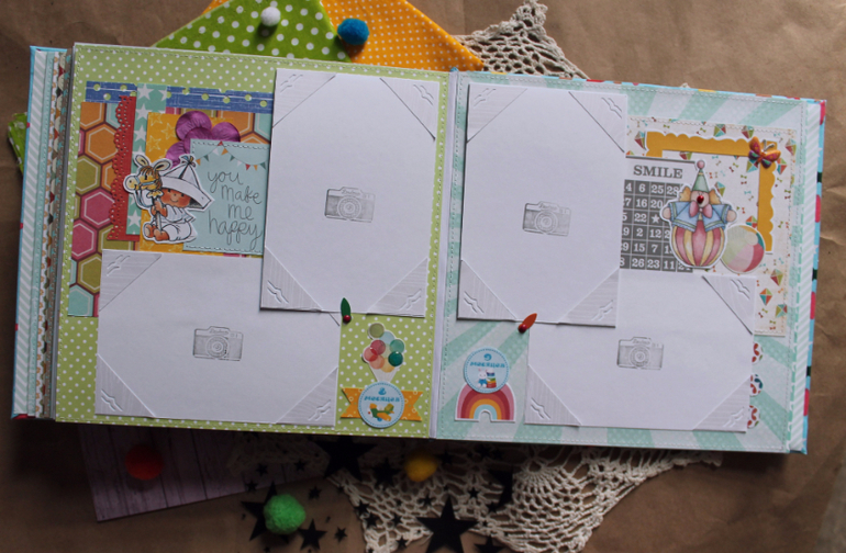 Пока самый большой по количеству страничек который я делала :) Формат 25*25 см,9 разворотов/18 страничек- о беременности,о родах/выписке, 12 месяцев и 4 тематических странички. Толстенький,тяжеленький -вместил 72 фото 10*15, на каждой страничке есть место для записи достижений малыша для каждого месяца.