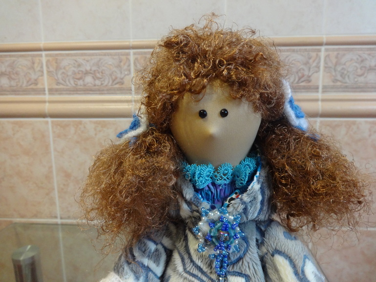 Вот такая "родилась" у меня девочка. Рост около 35 см, стоит сама. Очень нежная такая, романтичная.