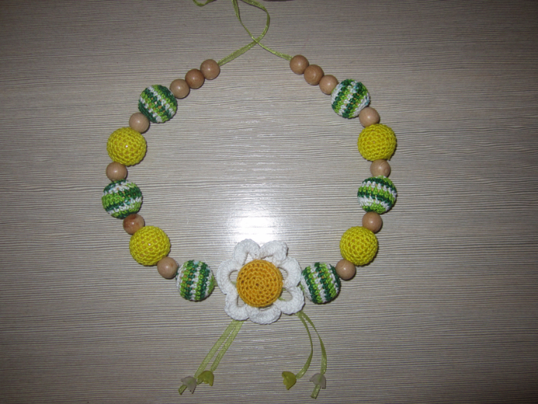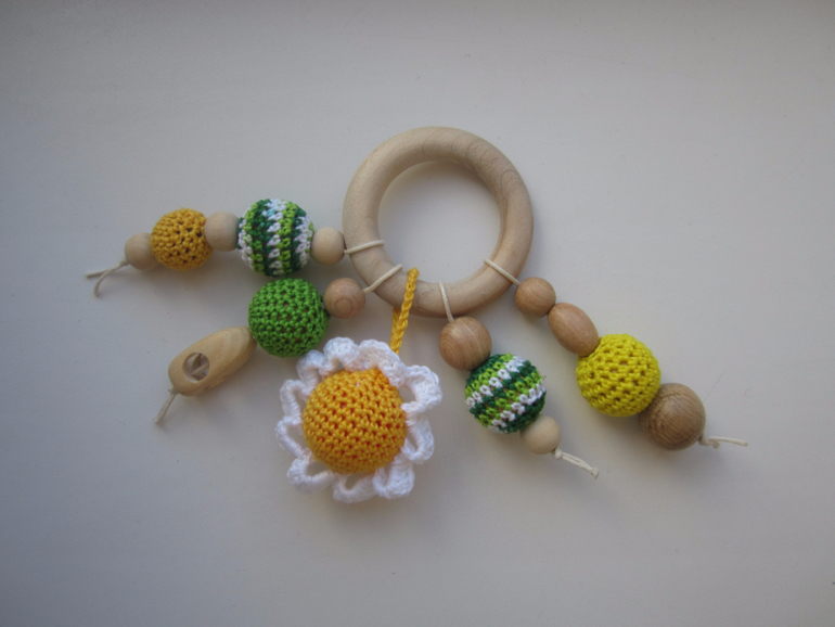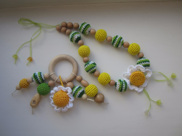 Вяжу на продажу и обменПристраиваю эко-набор для малышки. Бусины можжевеловые и буковые, без лака, в серединке ромашки на бусах - можжевеловая пуговица, в серединке ромашки на грызунке - пластиковая бусина с гремелками. Очень бюджетная цена.