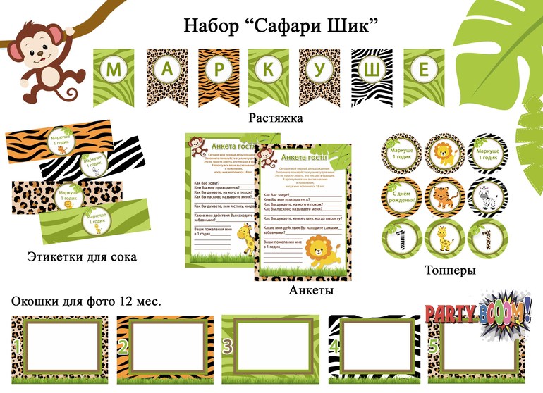 Оформление праздников, аксессуары для фотосессийНабор "Сафари шик" для оформления детского дня рождения.
