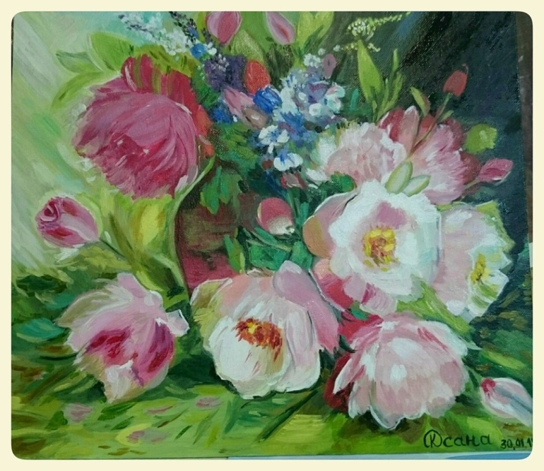 привееет))))на самом деле,я считаю что таланты есть у всех)))нужно просто их развивать)))я никогда даже не задумывалась о том,что хочу рисовать)))а тут-загорелась и пошла в художку осенью)))и вот что получается))ну а доча уже отучилась свои 7 лет!!!)))и теперь просто ходит со мной-на доп.уроки)рисуем)и не поверишь...дома у меня всего две картины)))всё остальное-РАСКУПИЛИ мои клиенты)))я даже и не думала продавать,но расхватали всё)