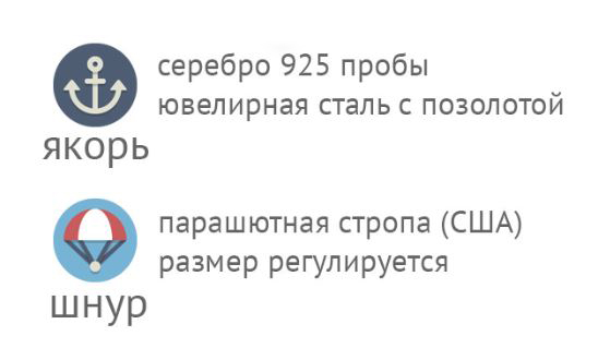 Якоря изготовлены либо из Серебра 925 пробы либо из Ювелирной Стали с Позолотой.
