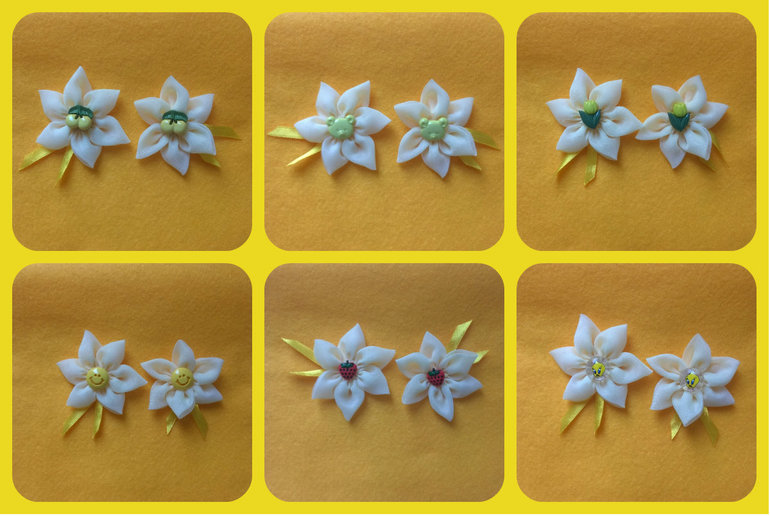 Бижутерия, броши, аксессуары для волосНовые заколки для девочек нежно желтого цвета. Крепеж на выбор - зажим или резинка. 1 пара (2 шт) - 100 руб. При покупке 3-х пар любых цветов, 4-я в подарок. При необходимости вышлю увеличенное фото понравившейся заколки. Могу сделать аналогичный цветок на шляпку или на повязке на малышек.