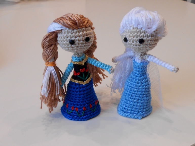 Куклы одеваются на пальчик. Рост около 10 см. Связаны из хлопка. И еще фото ))