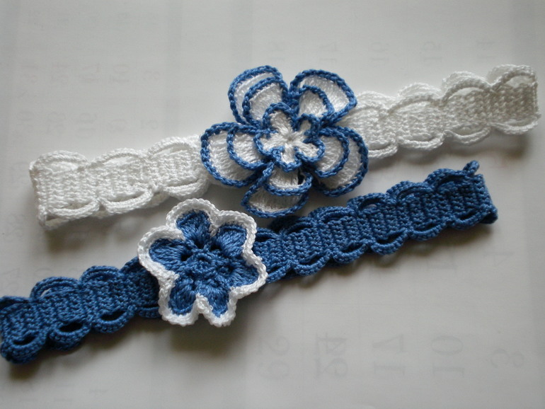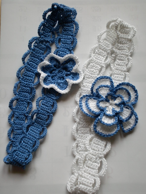 Повязки выполнены крючком, нитки "Ирис" х/б производства РФ в виде кружева с цветком, размер 34-36 см окружность головы. Цена указана за 1 повязку.