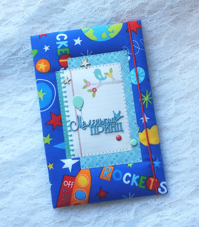 Скрапбукинг (альбомы, открытки и пр.)Добрый день! Сегодня покажу вам папку для свидетельства о рождении мальчика, размер 13,5х20 см, мягкая обложка, обтянута натуральным хлопком, закрывается на резинку, что очень удобно.. Внутри два прозрачных кармана, куда вставляется документ..