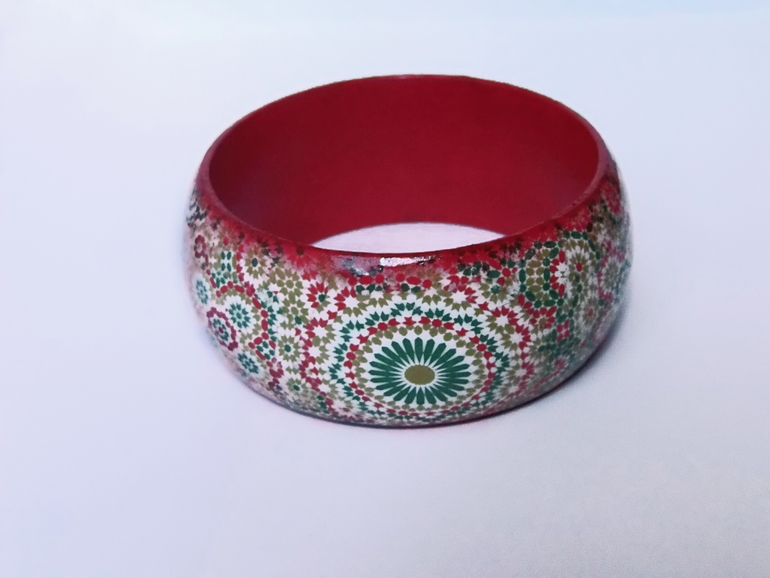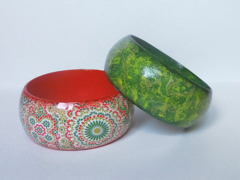 Деревянные браслеты в технике декопатч. Ширина красного и зеленого 3,5 см., ширина синего 2 см. Стоимость браслета 350р.